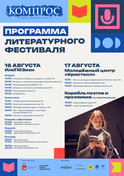 Литературный фестиваль «Компрос» пройдет 16-17 августа при поддержке Министерства культуры Пермского края; организатор — Агентство новых технологий.